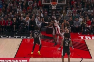 GIF-这球裁判吹马刺球权,开拓者挑战成功拿回球权