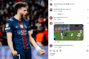 克瓦拉茨赫利亚也在赛后通过社媒晒出自己的怒吼庆祝照并配文:“红蓝军团(同样是巴黎的昵称之一)让我们继续前进!”