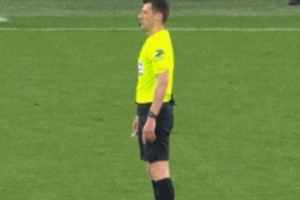 主裁判随即通过麦克风,向全场球迷们解释了这次判罚:“在查看了一次可能的点球事件后,是洛里昂的77号球员(卡塞里斯)推人犯规在先。因此最终决定不判点球,而是判给里昂一个任意球。”
