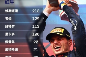 体育资讯4月22日讯 F1官方统计红牛车队车手大奖赛场次榜,维斯塔潘213场遥遥领先,韦伯第二,维特尔第三。