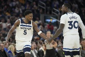首节比赛,森林狼进攻双核爱德华兹和兰德尔表现糟糕,两人手感都很差,投篮数据完全一样,其中爱德华兹投篮5中1,三分球2中0,仅拿到2分3篮板3助攻;兰德尔投篮同样5中1,三分球2中0,拿到2分4篮板。